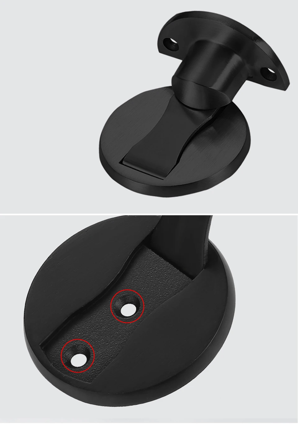 - The magnetic door holder consists of two parts: the floor mount and the door mount.